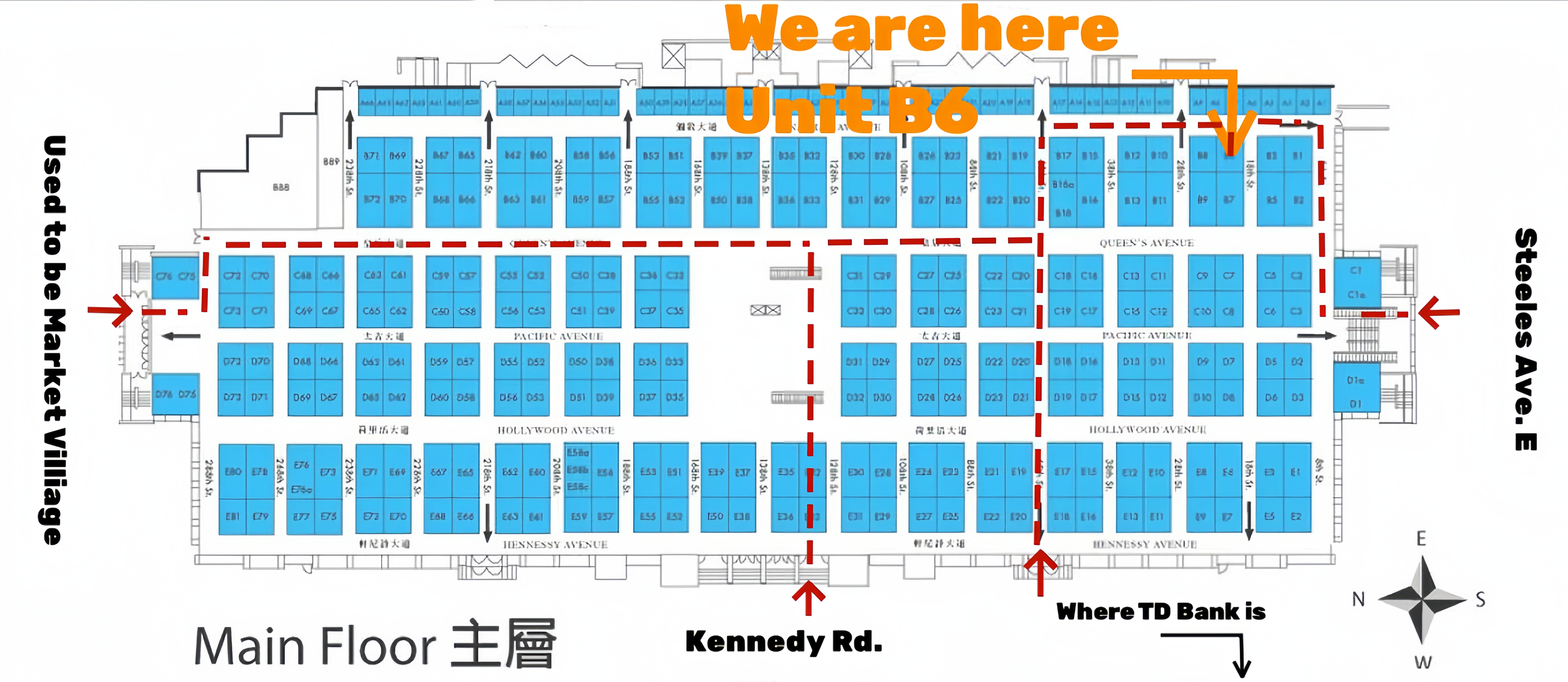 Our primary location is at Unit B06 (B zero six) of Markham's Pacific Mall (Wed Off)