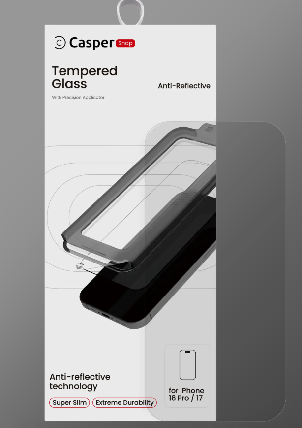 Casper Snap Tempered Glass Protector w/ Anti- Reflective Compatible with iPhone 17 Series